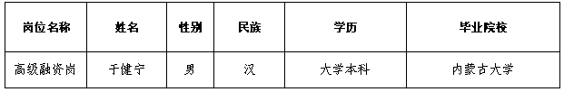 關(guān)于高級融資崗位擬錄取人選的公示